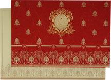 Designer Wedding Invitation in red handmadepaper sheet with two cream color inserts and same matching envelope.
