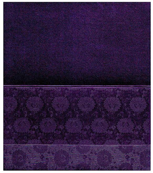 Made from high quality textured natural violet shade metallic card stock, this fabulous invitation card comes with a matching envelope and two inserts. Card front has a beautiful embossed motif design. The motif is further decorated with rhinestones (Kundans). The rich design theme and exclusive materials used to create this invitation card will surely reflect your elite taste.