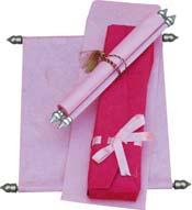An eyecatching pink scroll invitation on handmadepaper as opening with golden and burgundy tassel, with matching box and silk ribbon,creating a language unique to itself with its charteristics.Envelope is of same color combination in handmadepaper.Don't leave it to chance.....