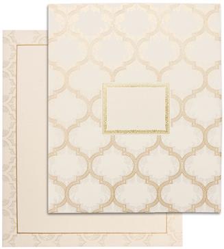 Perhaps it’s our imperfects that make us so perfect one another. This design has a story with cream color galgo sheet in lined texture, available with hardbound stuff of folder and box envelope. The thick double pasted inserts are magical with its light color base, golden foil border and same color impact followed on back side, available with two colorful inserts. Extra inserts are available as required. Initials or symbols can be printed or laser cut symbol are the option to put on the center of folder.