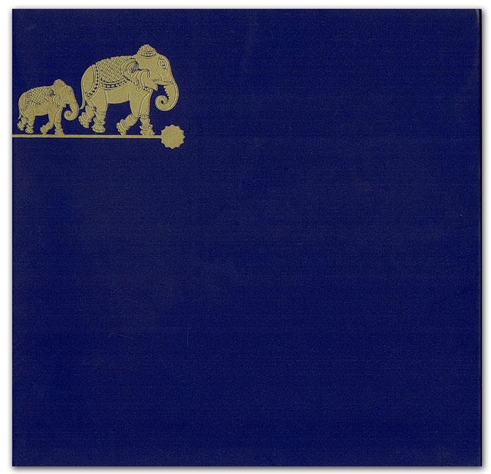 Royal blue color Shimmery finish sheet design available with matching blue color folder and envelope. Card front has a beautiful foil printed motif in gold with a space to print initials or symbols of your choice. Two inserts are available in blue and beige color and extra inserts are available as per color choice. Free text printing is available for two inserts and text to print on envelope.