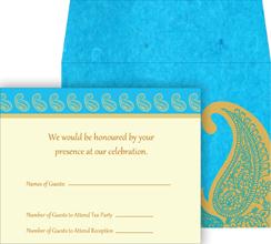 Teal & Cream color Handmade paper sheet RSVP card and envelope to match with any selected design. As you push the limits of creativity,explore our curious universal collection.