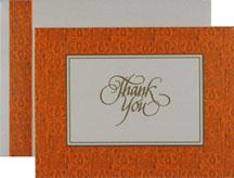 Ivory ream color thank you card and envelope with delicate golden raised printed motifs and border, one of our best selling design.